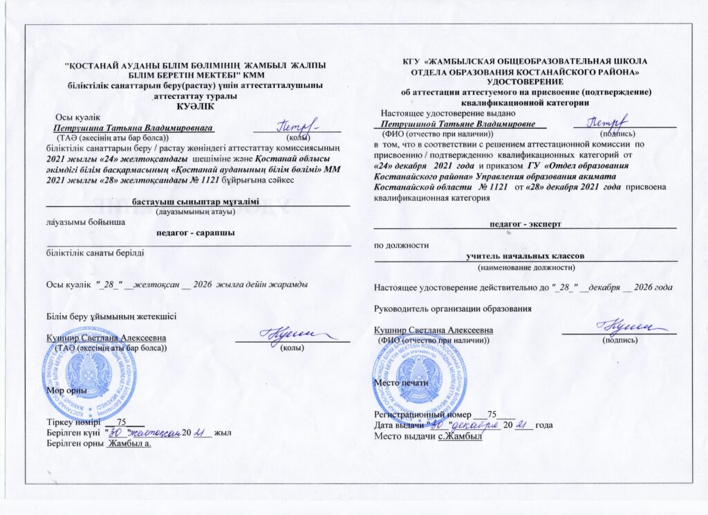 Мукушева М.С. воспитатель КП А